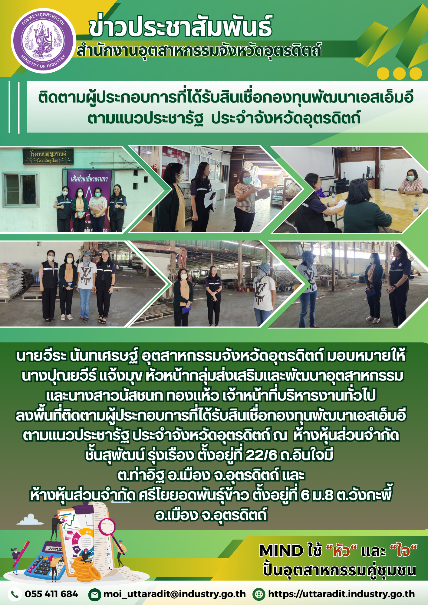 ติดตามผู้ประกอบการที่ได้รับสินเชื่อกองทุนพัฒนาเอสเอ็ใอีตามแนวประชารัฐ ประจำจังหวัดอุตรดิตถ์